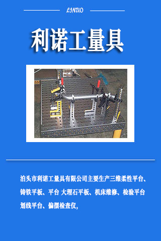 泊頭市利諾工量具有限公司加工、銷售、維修各種規(guī)格鑄鐵平臺(tái),鑄鐵平板,大理石平臺(tái),大理石平板,大理石構(gòu)件,檢驗(yàn)平臺(tái),檢驗(yàn)平板,劃線平臺(tái),劃線平板,焊接平臺(tái),焊接平板,三維柔性焊接平臺(tái),三維柔性焊接平板,裝配平臺(tái),裝配平板,試驗(yàn)臺(tái),機(jī)床工作臺(tái),墊鐵,鑄件,方箱,彎板,偏擺檢查儀,機(jī)床配附件,機(jī)床維修,機(jī)床修理